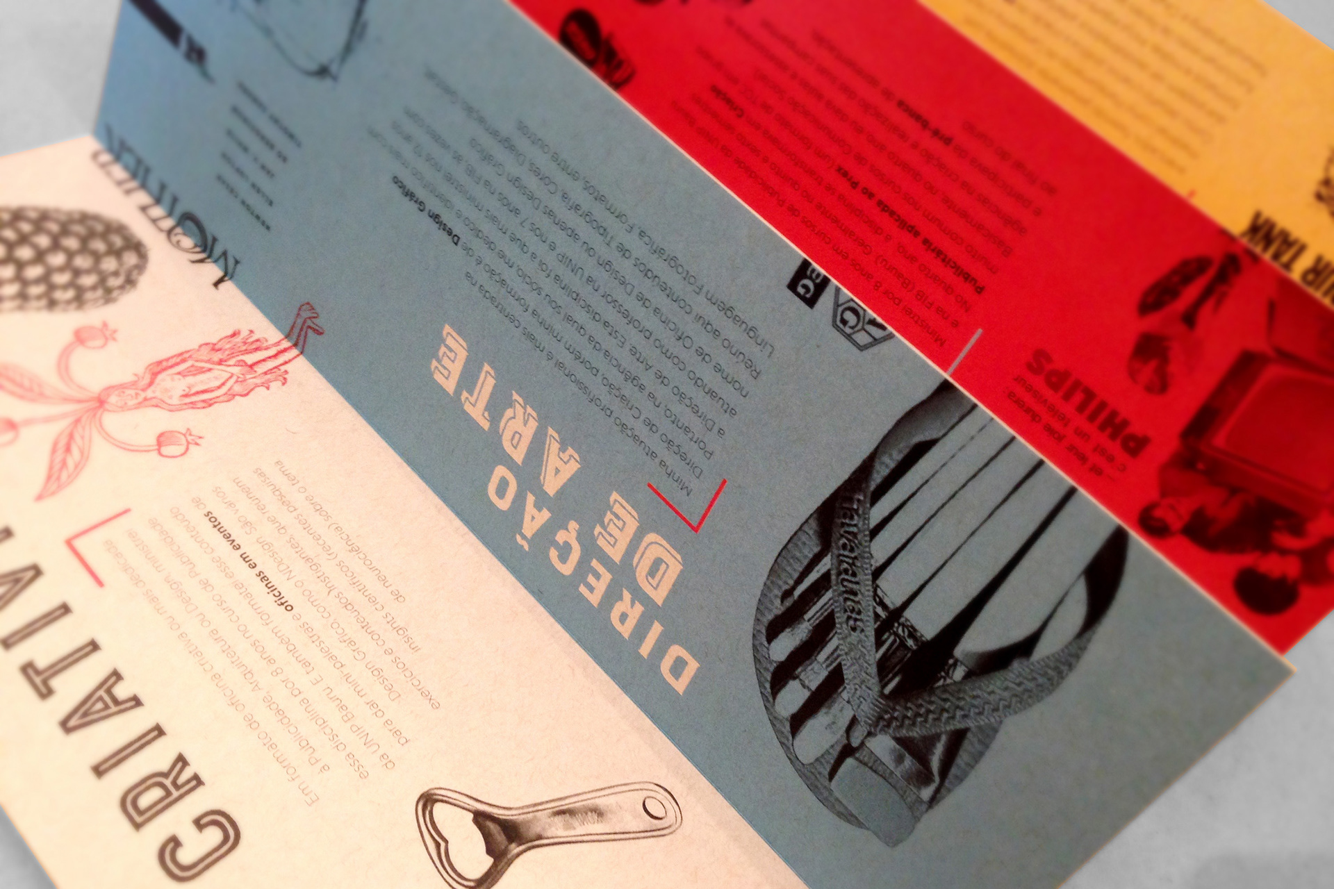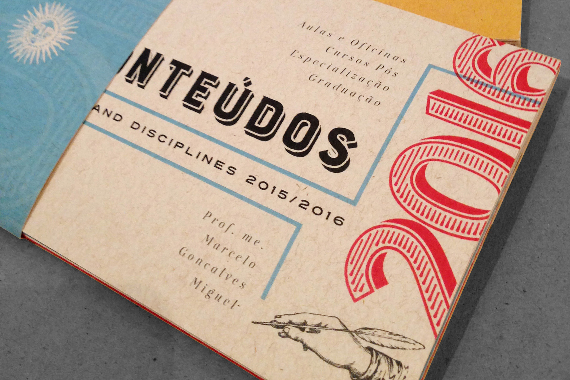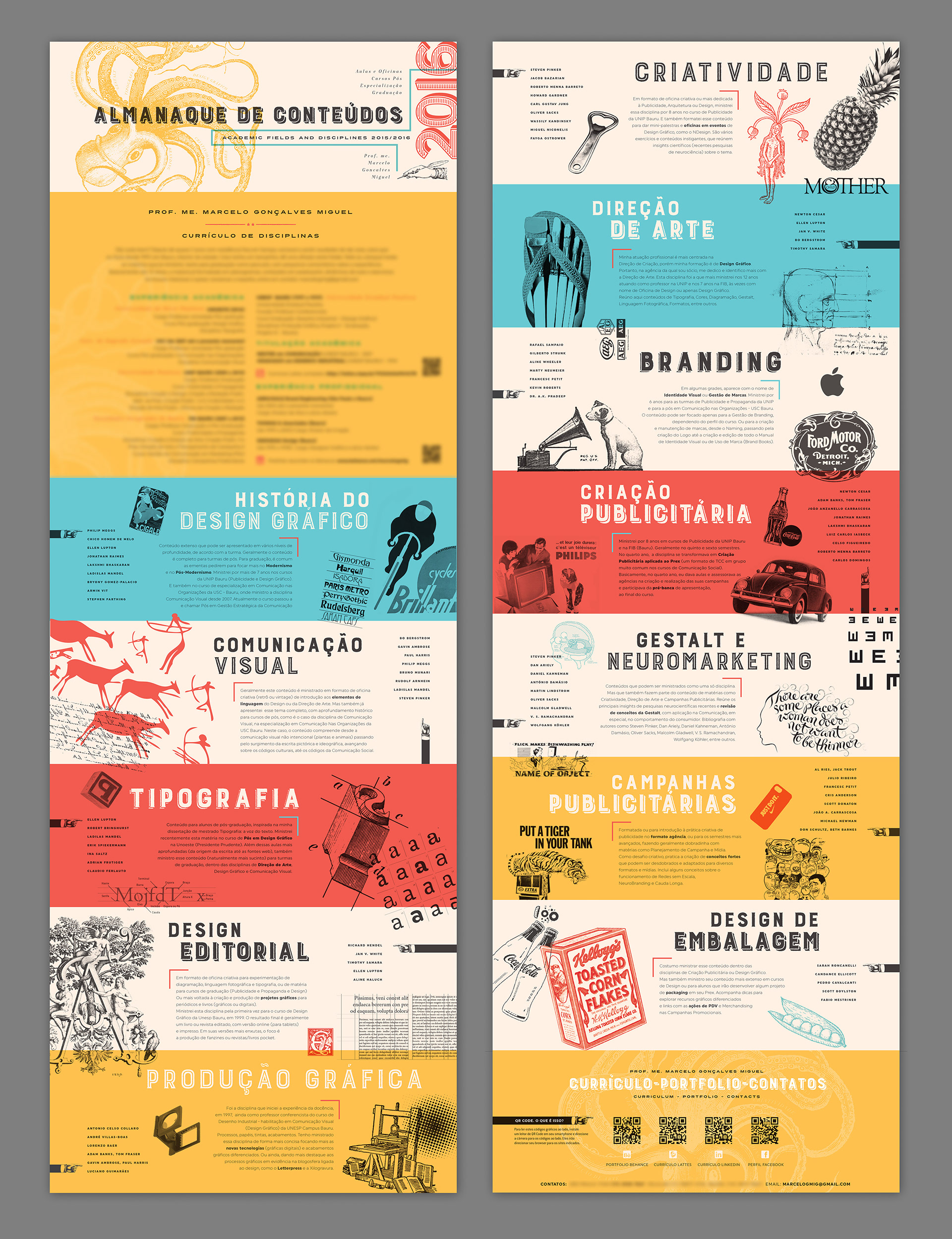 Booklet with a summary of the contents of my classes taught in undergraduate and graduate programs in the areas of Advertising and Graphic Design. Printed in color photocopy on recycled paper, assembled and folded by hand.