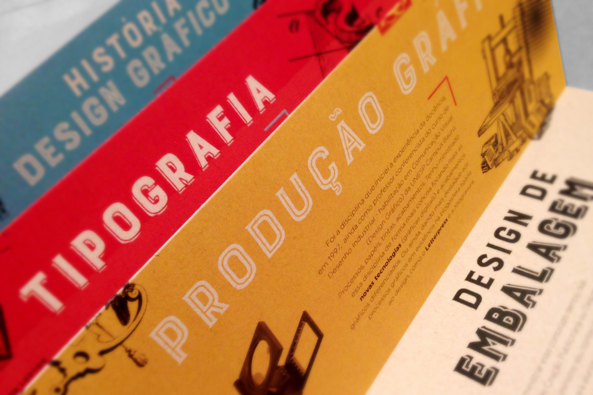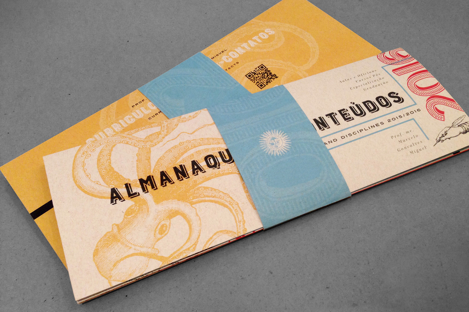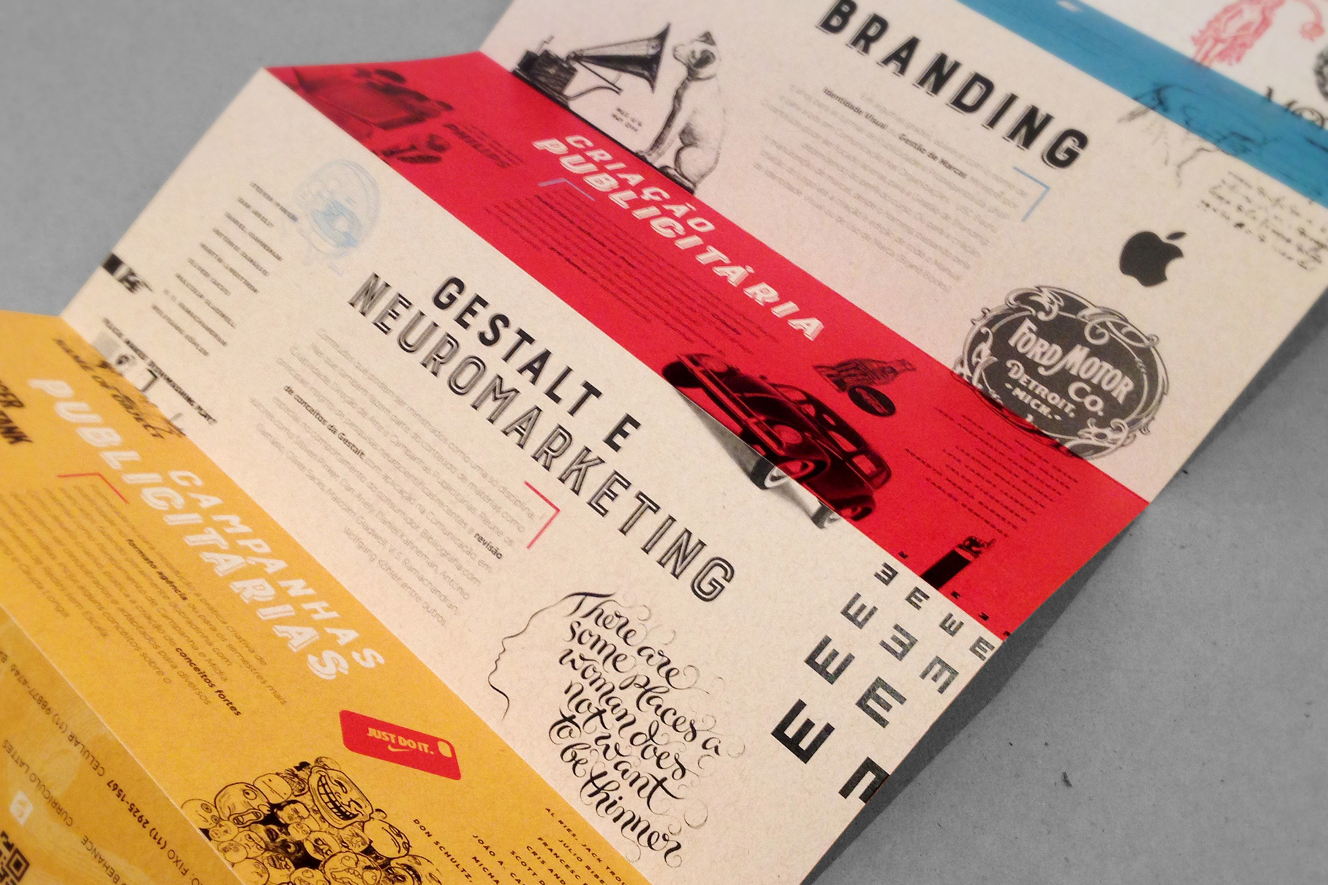 Booklet with a summary of the contents of my classes taught in undergraduate and graduate programs in the areas of Advertising and Graphic Design. Printed in color photocopy on recycled paper, assembled and folded by hand.